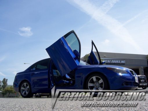 Vertical Door Kit for a BMW 5 Series 2003-2010 4DR Lambo Door Conversion Kit made specifically for every vehicle. VDI only manufacture’s the best kits, highest quality, best customer service, strongest kits, and the most affordable kit for the quality. Our line-up includes all of the major vehicle manufactures. This system is everything you need for a successful, reliable and cost effective conversion in a minimum amount of time. Vertical Doors, Inc., kits are proudly made and patented in the United States. Bolt-on kits made specifically for your vehicle. Not only are our kit easy to install but they are also easy to operate, basically open your door like normal until it stops at a predetermined position then raise your door. You also have the option of opening your door as factory unlike most Lambo Doors, Scissor Doors, Wing Doors, Butterfly Doors, Lamborghini Doors, etc, imitators.